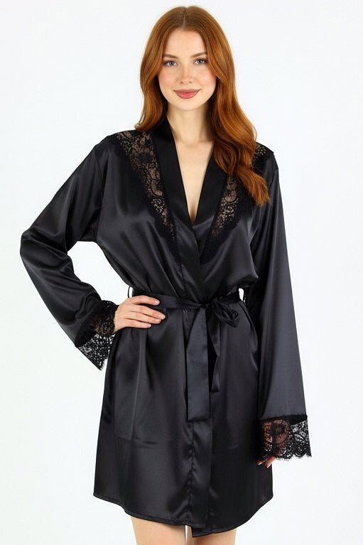 Experience the ultimate in luxury with the Ivory Lace Seduction Robe. This stunning piece features intricate lace detailing and a luxurious satin finish. The tie waist adds a touch of elegance, making it perfect for any romantic evening.