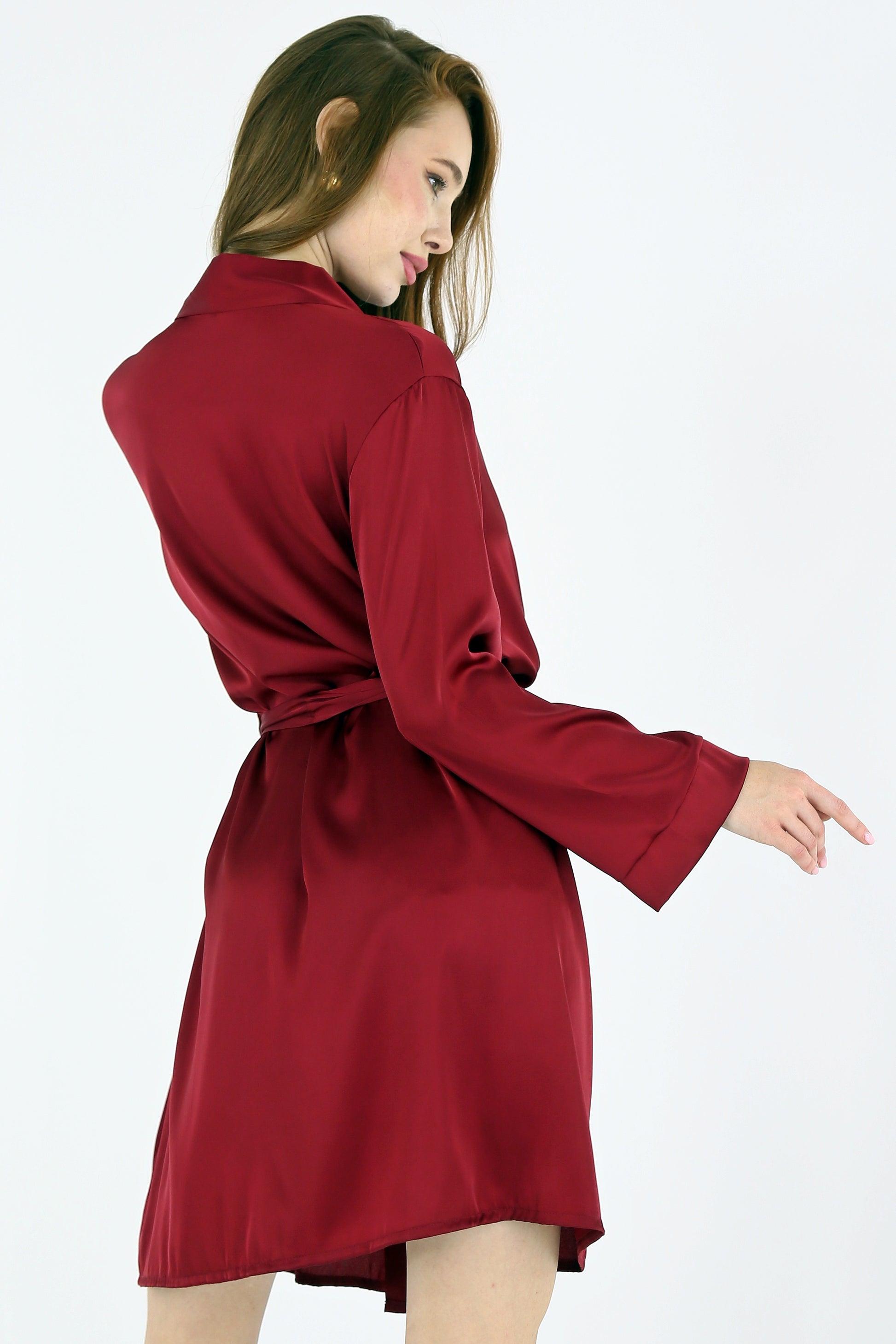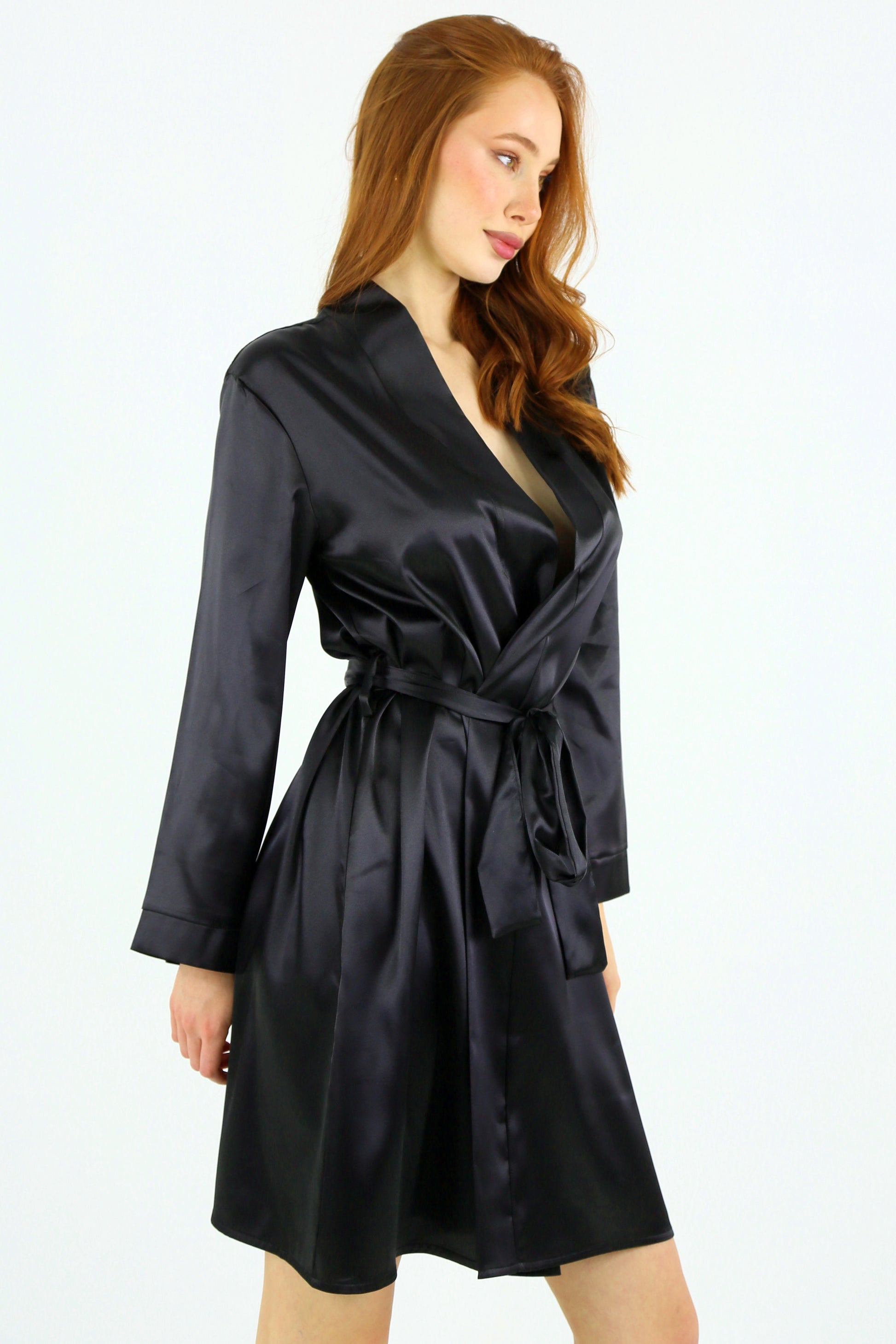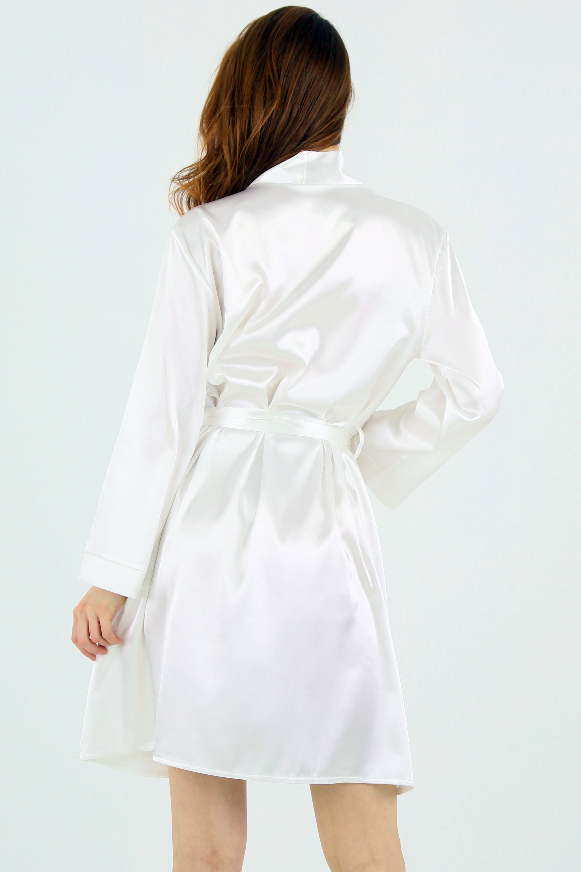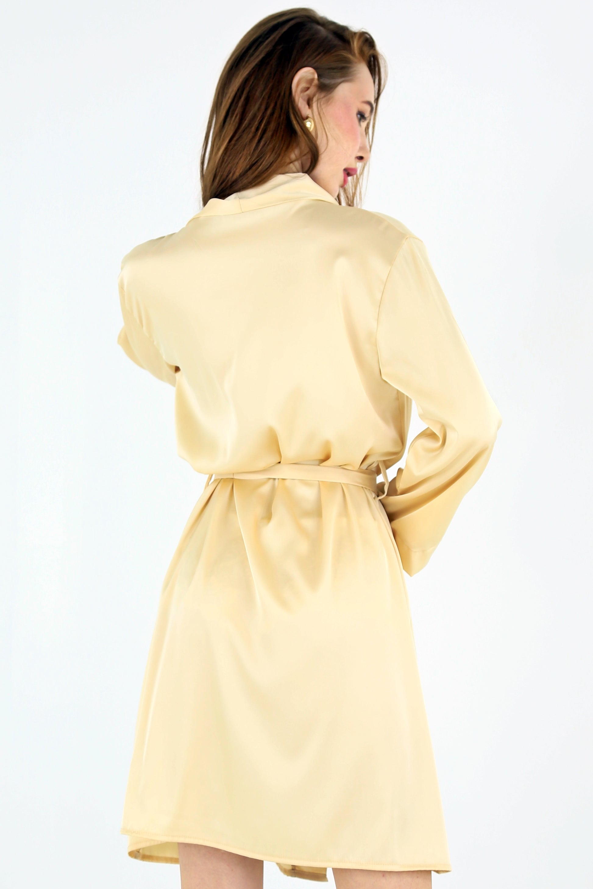 Indulge in luxury with the Champagne Satin Delight Robe. This beautiful piece features a rich champagne colour and a luxurious satin finish. The elegant design and tie waist make it a perfect choice for any special occasion.
