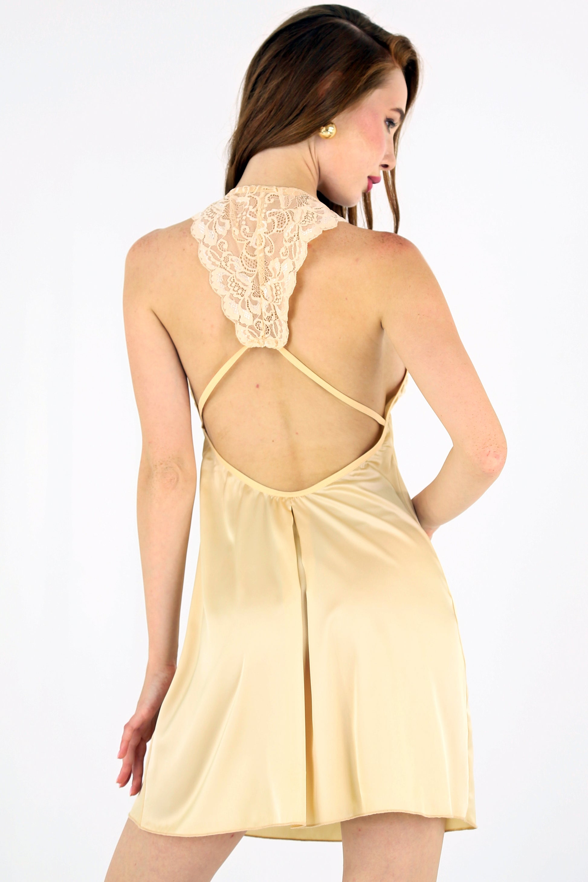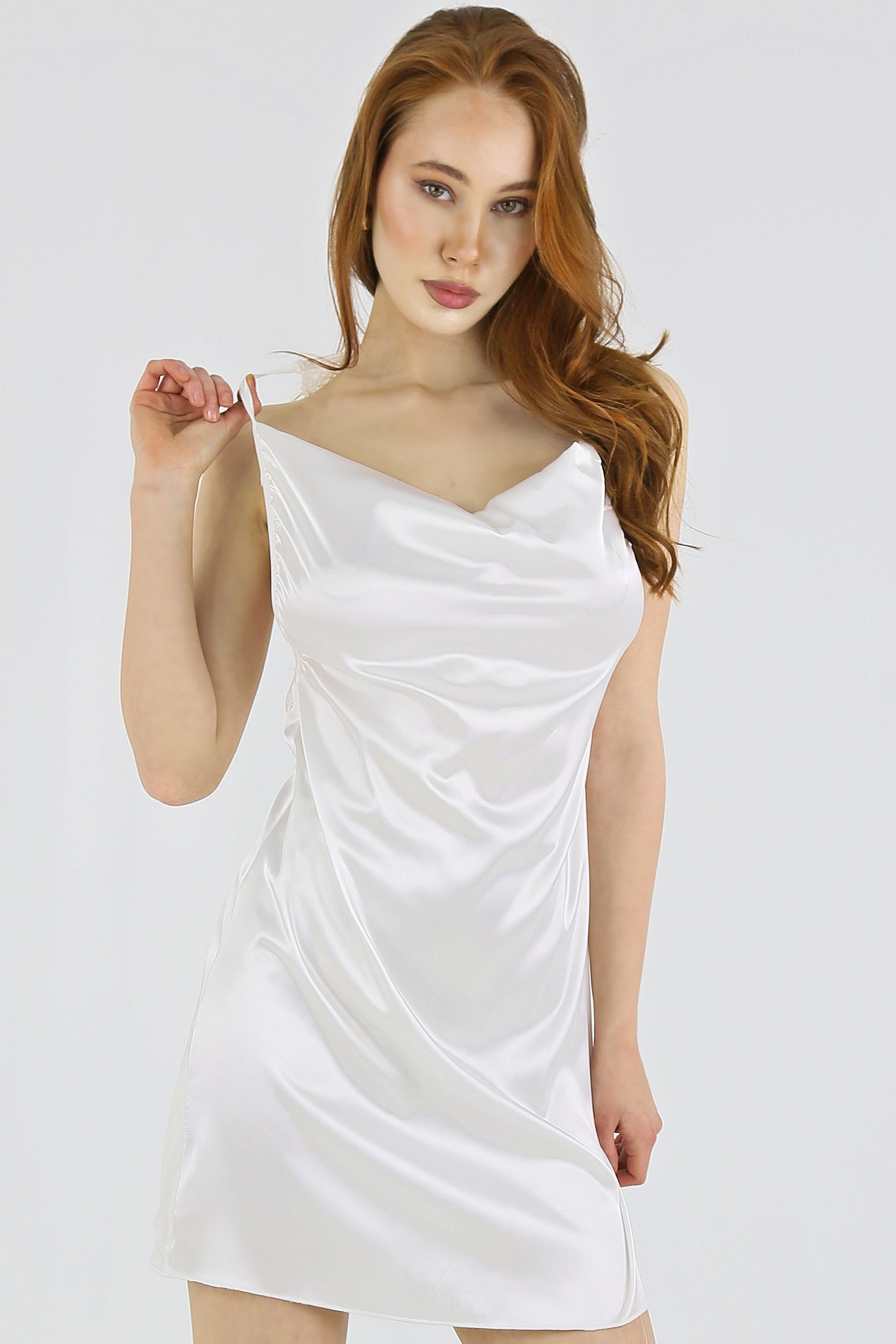 Indulge in luxury with the Ivory Satin Elegance Slip. This beautiful piece features a sleek satin finish and a flattering fit. Perfect for a restful night's sleep or a chic evening at home.