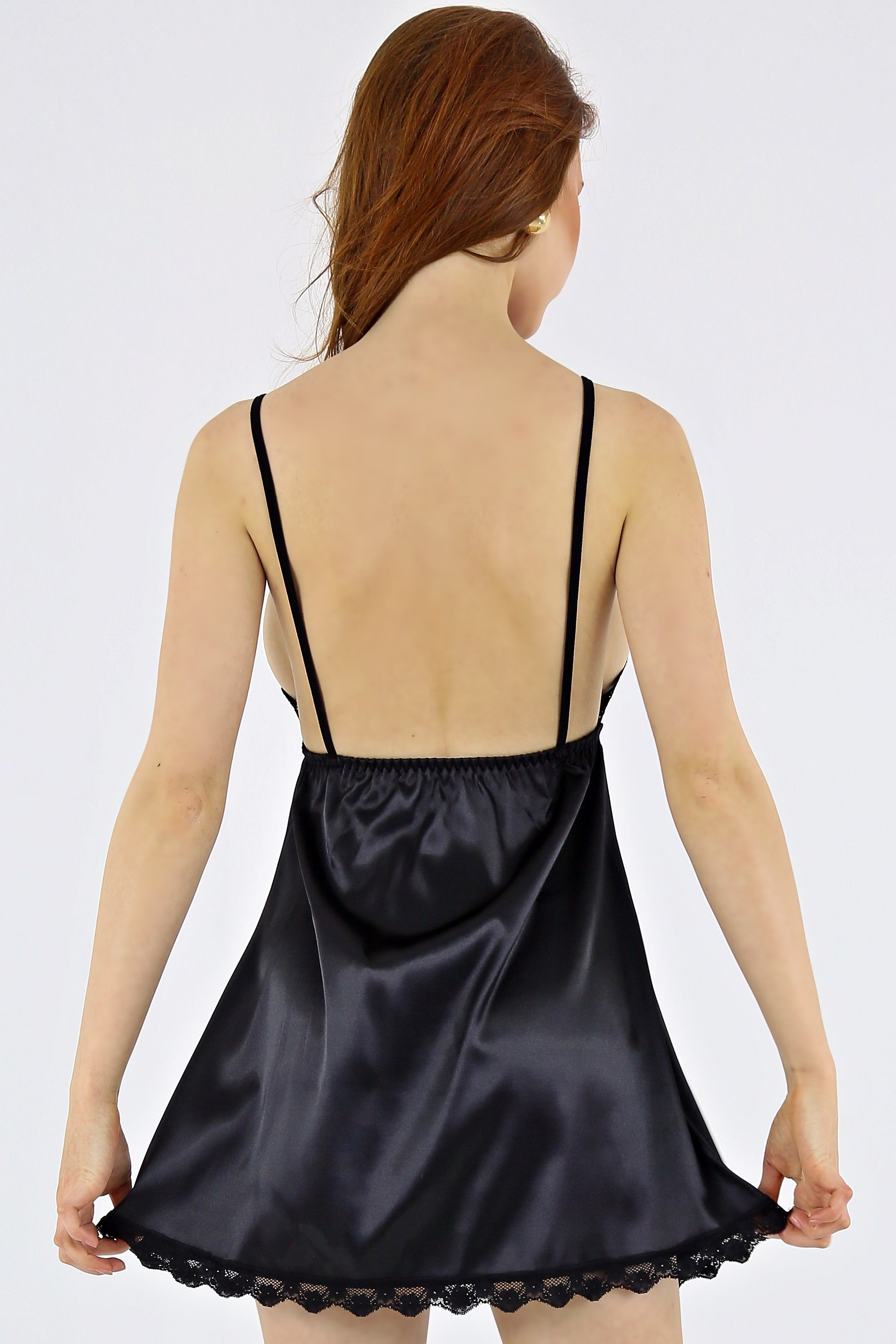 Discover the beauty of simplicity with the Noir Lace Enchantment Slip. This sleek and elegant piece features a luxurious satin finish and delicate lace accents. Perfect for a restful night's sleep or a chic evening at home.