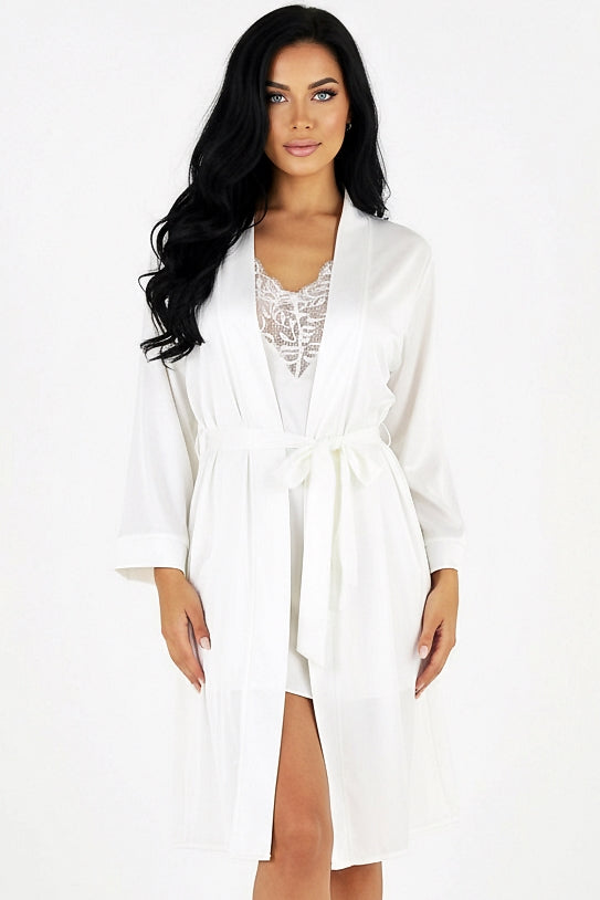 Embrace elegance with the Sheer Lace Bridal Robe. This beautiful piece features a sheer white finish with delicate lace accents. Perfect for a night of sophisticated style.